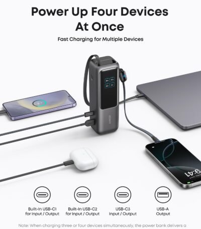 Anker Zolo Power Bank 25K, 165W, Built-In and Retractable Cables