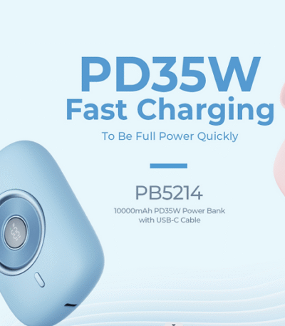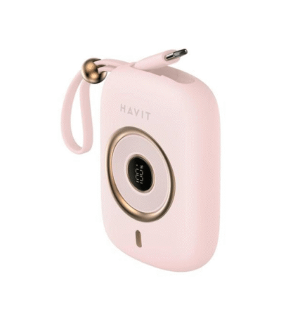 Havit PB5214 Mini Modern Power bank 10000mah PD35W With Built in Type c Cable Pink
