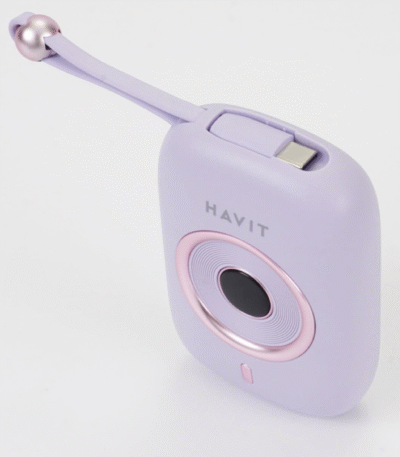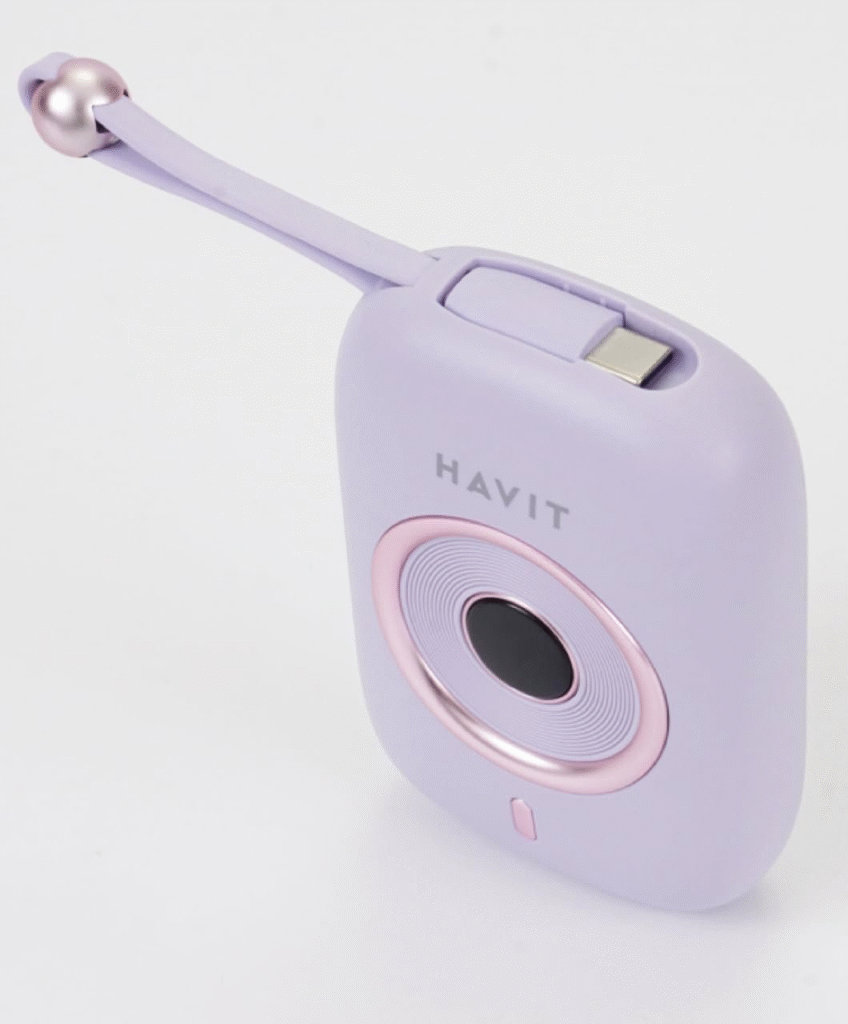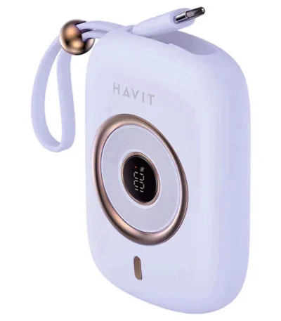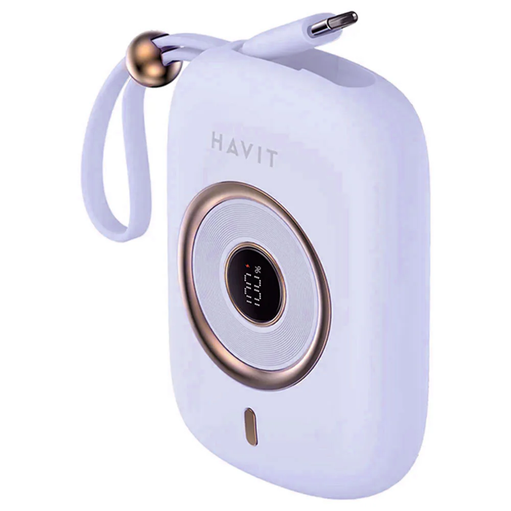 Havit PB5214 Mini Modern Power bank 10000mah PD35W With Built in Type c Cable Purple