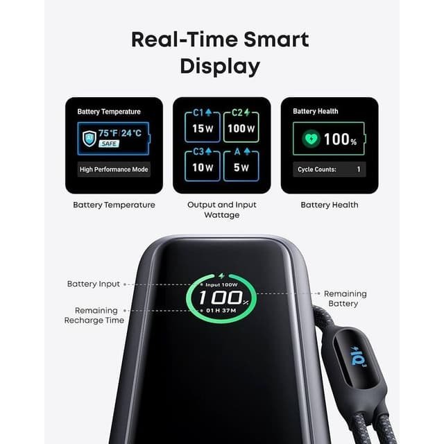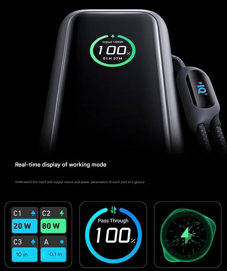 Fast Charging Technology: 100W ultra-fast recharging gets the power bank to 30% in just 20 minutes.
