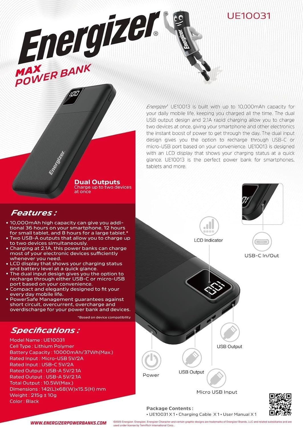 - Power Capacity 10,000mAh